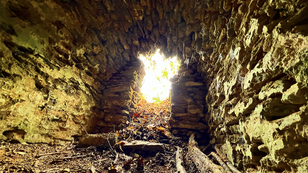 We began our expedition on Observation Road, where Gonick pointed out a hidden architectural ruin—an old root cellar. She speculated that the stone structure likely dates back to the late 1800s or early 1900s.